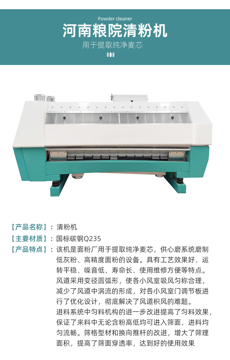 6、該系列清粉機是消化先進的技術(shù)開發(fā)研制并經(jīng)電腦優(yōu)化定型而生產(chǎn)的新產(chǎn)品。