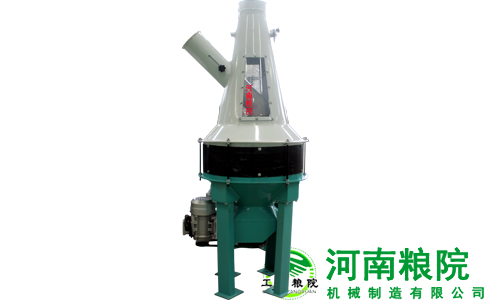 糧谷顆粒從可調節物料進口進入,散落在渦輪盤中心處,在變頻電機帶動渦輪散料盤的作用下,變頻電機隨著物料流量的快慢自動調劑,均勻的把物料分散開,氣流通過分散開的物料間隙,帶走輕雜質和細顆粒灰塵等,從可調節吸風口排出,凈化過的糧谷由出料口進入下道工序。